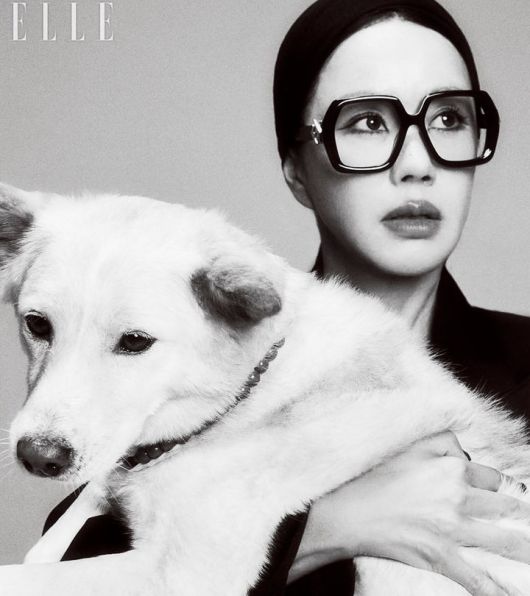 사진 속 엄정화는 반려견과 함께 있다.