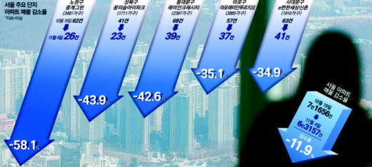 상대적으로 집값은 낮지만 3중 규제 직격탄을 맞은 노도강(노원·도봉·강북)의 매물은 13.2% (1460건) 감소했다. 반면 10·15 대책 전부터 규제를 받고 있는 강남 3구와 용산구의 아파트 매물은 3.8%(685건) 감소하는 데 그쳤다.