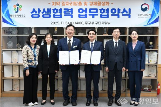 대전시 중구와 대전세무서는 5일 업무협약을 체결하고, 지역 창업자와 소상공인이 실질적으로 체감할 수 있는 세무 지원과 일자리 연계 시스템을 공동 구축하기로 했다.
