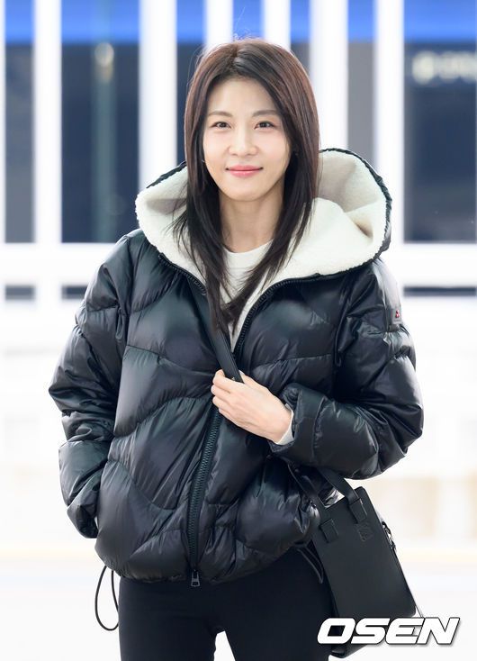 하지원이 출국장으로 향하며 팬과 취재진을 향해 인사를 하고 있다. 2025.11.06 /sunday@osen.co.kr