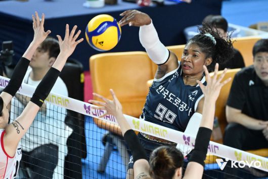 도로공사는 지난 5일 오후 김천실내체육관에서 열린 2025-26시즌 진에어 V-리그 여자부 경기에서 정관장에 세트스코어 3-0(27-25 25-20 25-15)으로 이겼다.