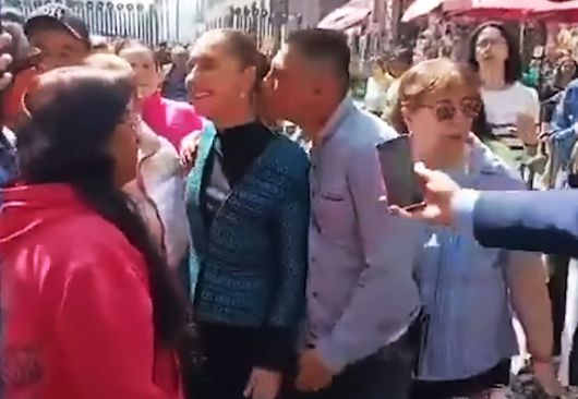 클라우디아 셰인바움 멕시코 대통령이 4일(현지시간) 길거리에서 남성 취객에게 성추행을 당하고 있다. 유튜브 갈무리 |