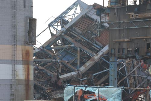 6일 오후 2시 7분쯤 울산 남구 용잠동 한국동서발전 울산발전본부 울산화력발전소에서 60m 높이 보일러 타워가 무너졌다. 사진은 붕괴 현장. 2025.11.6 [연합뉴스 제공] |