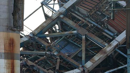 무너진 구조물은 60미터 높이 보일러 타워로, 철거를 앞두고 있었습니다.