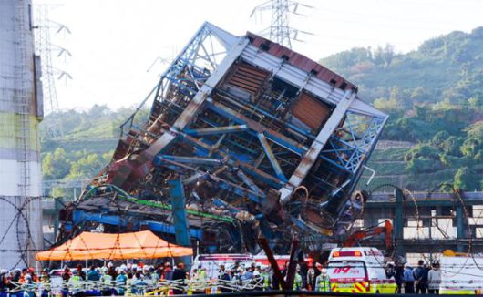 6일 울산 남구 남화동 한국동서발전 울산화력발전소에서 철거 중이던 보일러 타워가 무너졌다. 이 사고로 작업자 9명이 매몰됐다가 이날 오후 10시 기준 2명이 구조됐고, 매몰자 2명을 발견해 구조 중이다. 소방 당국은 나머지 매몰자 5명에 대해서도 수색을 벌이고 있다. 울산=뉴시스