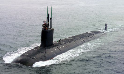 미 해군 버지니아급 핵추진잠수함 1번함 버지니아함이 수면 위로 항해를 하고 있다. 세계일보 자료사진 |
