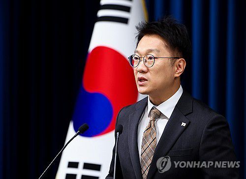 (서울=연합뉴스) 김도훈 기자 = 김남준 대변인이 7일 용산 대통령실에서 이재명 대통령이 인종차별적 언행을 해 논란을 일으킨 김철수 대한적십자사 회장에 대한 보건복지부 감찰 지시 관련 브리핑을 하고 있다. 2025.11.7