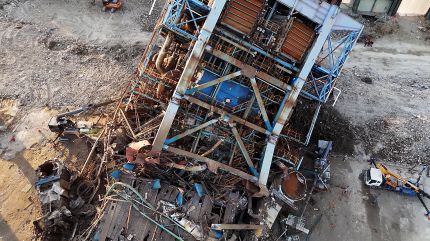 앞서 어제 오후 2시쯤 60m짜리 보일러 타워가 무너졌습니다.