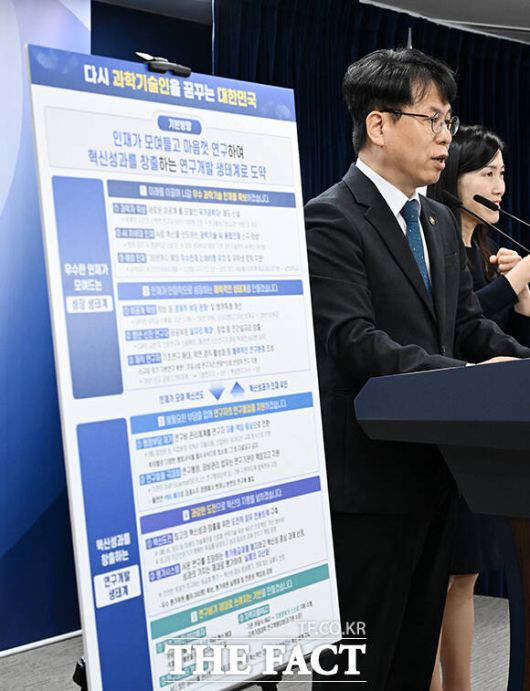 [더팩트ㅣ임영무 기자] 박인규 과학기술정보통신부 과학기술혁신본부장이 7일 오전 서울 종로구 정부서울청사에서 '과학기술 인재 미래 비전 제시 및 연구개발 혁신 생태계로의 도약' 방안과 관련해 브리핑하고 있다.
