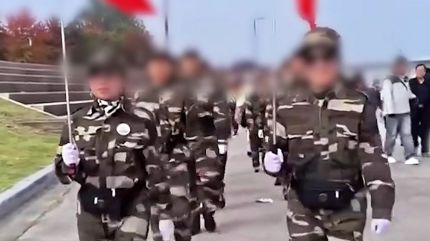 - 군복 입은 중국인들, 깃발 들고 한강 행진