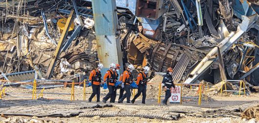 7일 오전 7시 30분쯤 한국동서발전 울산화력발전소 붕괴 현장. 전날 철거 중이던 보일러 타워가 붕괴해 매몰된 작업자 9명 중 2명을 구조한 지 17시간이 흘렀지만 추가로 매몰자를 구해 내지 못하고 있었다. “1명 찾았다”는 구조대원 고함에 현장에 있던 소방관·경찰관이 일제히 일어섰다. 이어 8시 54분까지 총 3명이 잔해 속에서 차례로 발견됐다. 그러나 거기까지였다. 가까스로 꺼낸 2명은 병원으로 이송했으나 숨졌고, 나머지 1명은 아직 구조하지 못하고 있다.