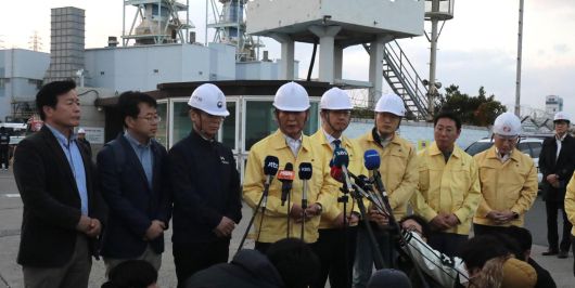 더불어민주당 정청래 대표(뒷줄 왼쪽에서 네 번째)가 7일 한국동서발전 울산발전본부 내 울산화력발전소 붕괴 사고 현장을 찾아 브리핑을 하고 있다. 정 대표는 “(매몰자를) 빨리 구조해 달라고 애원하는 가족들의 뜻대로 구조에 최선을 다하겠다”고 밝혔다. 울산=뉴스1 Copyright Ⓒ 동아일보. All rights reserved. 무단 전재, 재배포 및 AI학습 이용 금지