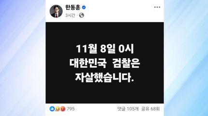 한 전 대표는 자신의 SNS에 11월 8일 0시 대한민국 검찰은 자살했다고 적었습니다.