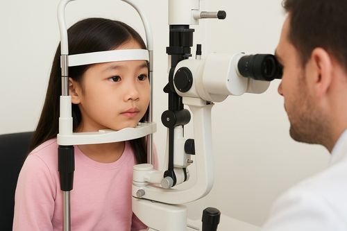 근시로 진단된 아동은 눈의 안축장(각막에서 망막까지의 길이) 성장 속도와 근시 진행 정도를 꾸준히 관찰해야 하며, 비문증(날파리증)이나 광시증(빛 번쩍임)은 망막박리의 전조일 수 있으므로 즉시 진료를 받아야 한다.