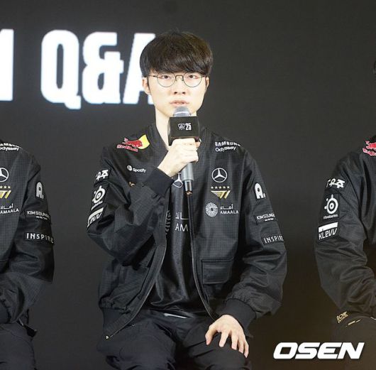 KT에 이어 두 번째로 단체 인터뷰에 나선 T1 선수단은 글로벌 최고 인기 팀 답게 ‘페이커’ 이상혁을 중심으로 질문 세례가 쏟아졌다.