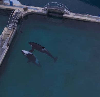사진작가 세프 롤리스는 지난달 30일, 자신의 SNS에' 마린랜드 앙티브'에 사는 어미 범고래 '위키'와 새끼 '케이조'를 촬영한 영상을 공개했습니다.