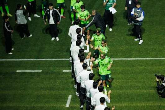 여기서 끝이 아니었다. 후반 추가시간 이번엔 김봉수의 핸드볼 반칙으로 전북에 페널티킥이 주어졌다. 키커로 나선 이승우가 침착하게 골망을 가르며 경기에 쐐기를 박았다. 그는 유니폼을 벗어던진 채 깃발을 들고 관중석 앞을 거닐며 팬들을 열광케 했다.