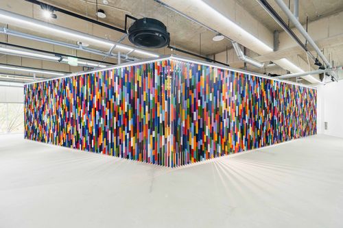 블라인드가 접혀 있을 때는 전시장 중앙이 텅 비어 있다가, 일정 시간마다 8개의 모터가 작동하면서 블라인드가 전시장을 가로질러 펼쳐진다. 그 안으로 들어가 블라인드를 따라 걸으면 오방색 대나무 길을 걷는 듯한 체험을 할 수 있다.