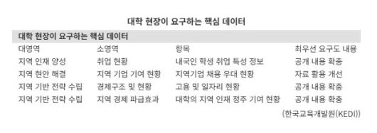 즉 대학들이 원하는 데이터는 단순히 취업률과 같은 결과 지표가 아닌, 교육과 고용의 '과정'과 '연계'를 파악할 수 있는 상세한 데이터였다. 예를 들어, 졸업생의 지역 내 일자리 유지취업률과 지역정주율, 그리고 이수한 교육 프로그램이 실제 취업한 직무와의 연관성을 분석할 수 있는 데이터가 필요하다는 것이다.