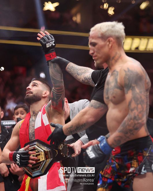 토푸리아는 지난 6월 미국 라스베이거스 티모바일 아레나에서 열린 UFC 317 라이트급 타이틀전에서 올리베이라를 경기 시작 2분 27초 만에 펀치 KO로 꺾고 챔피언벨트 2개를 허리에 감았다.