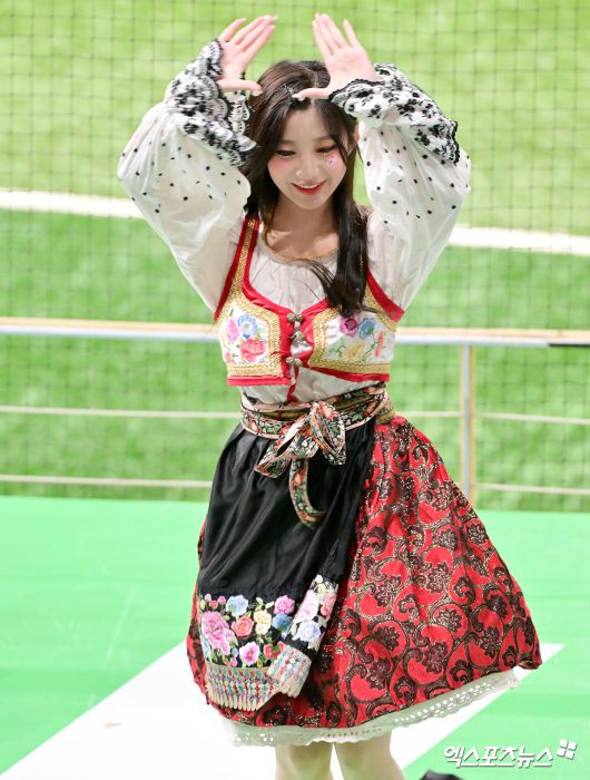 (엑스포츠뉴스 고척, 김한준 기자) 9일 오후 서울 구로구 고척스카이돔에서 열린 '2025 NAVER K-BASEBALL SERIES' 대한민국과 체코의 평가전 경기, 이주은 치어리더가 멋진 공연을 선보이고 있다.김한준 기자 kowel@xportsnews.com