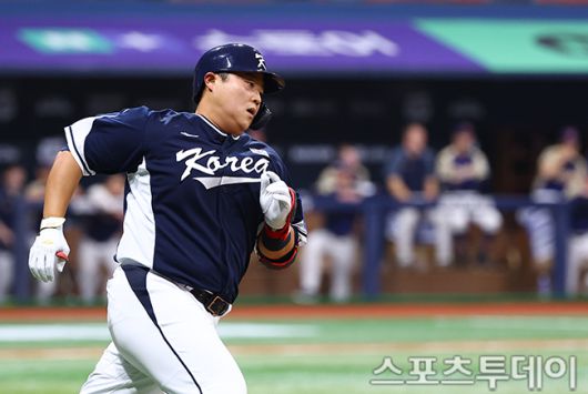 [스포츠투데이 팽현준 기자] 9일 서울 고척스카이돔에서 열린 '2025 NAVER K-BASEBALL SERIES' 대한민국과 체코의 평가전, 9회초 2사 2루 한동희가 적시 2루타를 치고 있다. 2025.11.09. [스포츠투데이 팽현준 기자 sports@stoo.com]