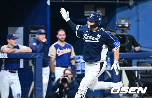 9회초 무사 1루 상황 한국 이재원이 달아나는 중월 투런포를 날리고 그라운드를 돌며 기뻐하고 있다. 2025.11.09 / dreamer@osen.co.kr