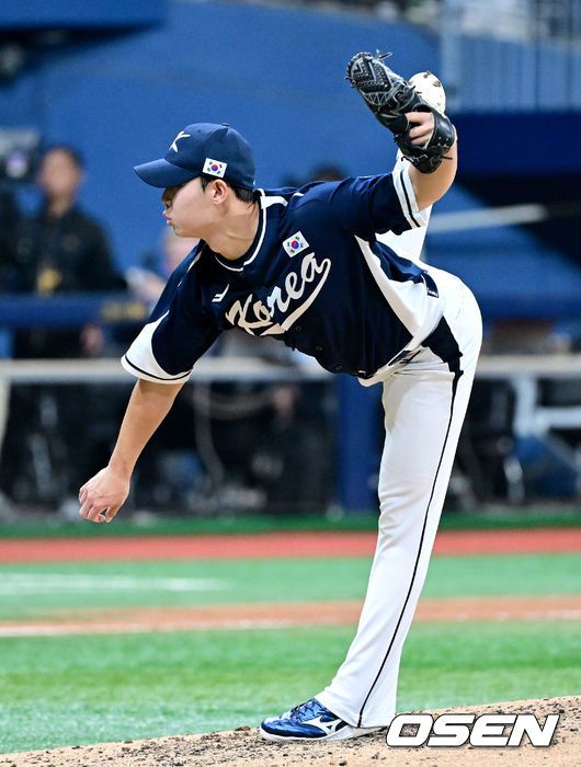 9회말 마운드에 오른 한국 투수 김영우가 힘차게 공을 뿌리고 있다. 2025.11.09 / dreamer@osen.co.kr