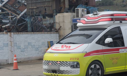 9일 한국동서발전 울산화력발전소 붕괴 사고 매몰자 시신이 구급차량에 실려 이송되고 있다. 뉴스1 |
