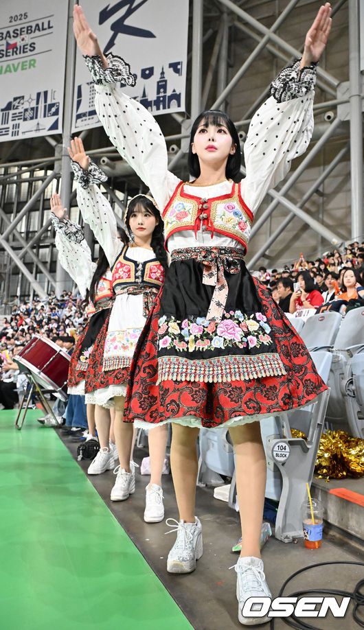 한국 차영현 치어리더가 체코 전통 의상을 착용하고 응원을 하고 있다. 2025.11.09 / rumi@osen.co.kr