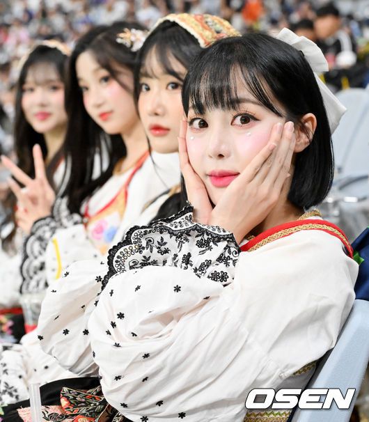 한국 차영현 치어리더가 체코 전통 의상을 착용하고 응원을 하고 있다. 2025.11.09 / rumi@osen.co.kr