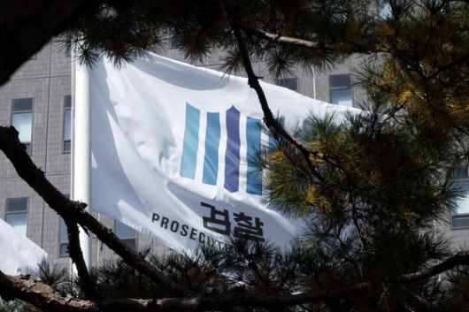 9일 서울 서초구 서초동 서울중앙지방검찰청 앞에 설치된 게양대에 걸린 검찰기가 바람에 나부끼고 있다. 뉴스1 |