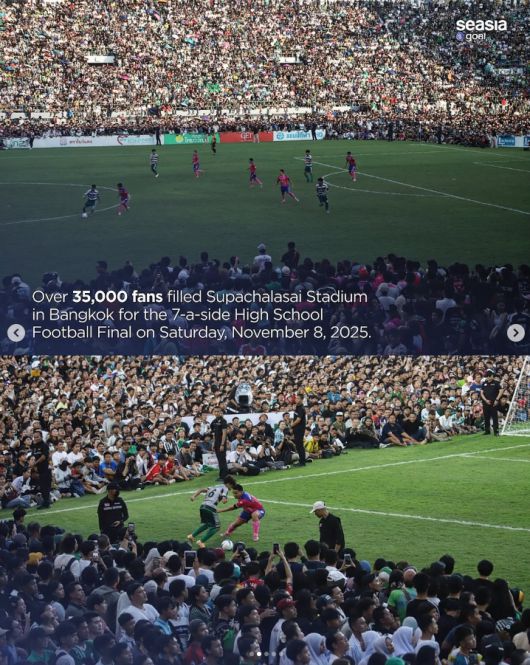 아시아 축구 관련 소식을 전하는 'SEASIA골'은 9일(한국시간) 공식 채널을 통해 지난 8일 태국 수파찰라사이 경기장에서 열린 태국 고교축구 결승전을 관람하기 위해 3만5000여명의 관중들이 모여든 사연을 전했다.