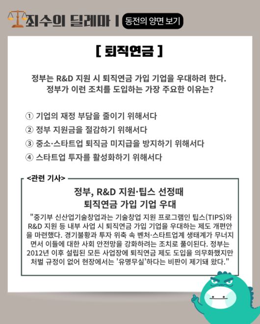 ▶기사 바로가기: 정부, R&D 지원·팁스 선정때 퇴직연금 가입 기업 우대