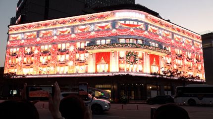 본격적인 연말 시즌을 알리는 대형 미디어 파사드로, 올해는 몰입감을 높이기 위해 스크린 크기를 농구장 세 개 규모로 키웠습니다.
