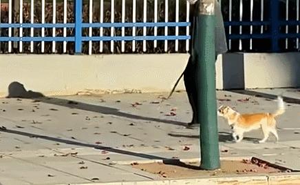 노인의 다른 손에 목줄로 이어진 강아지는 노인이 걸음을 옮길 때마다 앉았다 일어서기를 반복하고 있었다. 무슨 연유일까?