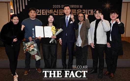[더팩트ㅣ임영무 기자] 2025 인터넷신문 언론윤리대상이 10일 오후 서울 중구 프레스센터에서 열린 가운데 기자부문 대상을 수상한 더팩트 서다빈 기자가 수상 소감을 밝히고 있다.