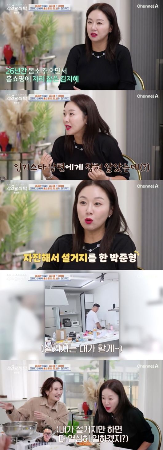 김지혜는 남편 박준형보다 10배 넘는 수익이냐는 질문에 “박준형 씨가 너무 잘나가서 찍 소리도 못하고 잡혀 살았다. 역전이 되는 순간 준형이 오빠가 가서 설거지를 하더라”라고 솔직하게 답했다.