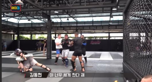 1라운드가 끝나자 정확한 사연이 공개됐다. 고석현의 그라운드 싸움에 당하자 상대 선수가 화가 나 거칠게 나온 것. 휴식 시간 김동현이 괜찮냐고 불어보자 고석현은 "나한테 레슬링에서 당해서 계속 그라운드 싸움에서 괴롭힘 당하니 일어나서 하자더라. 그래서 일어났더니 갑자기 거칠게 달려들더라"라고 말했다.