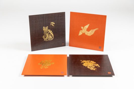 전통 민화에 나오는 까치와 호랑이 등을 표현한 금박 작품. 국가무형유산기능협회 제공 |