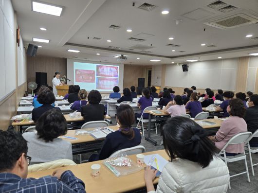 이번 교육은 스스로 구강관리가 어려운 어르신들을 위해 돌봄 종사자들이 올바른 구강관리 방법을 익혀, 어르신들의 구강건강 증진에 기여할 수 있도록 마련됐다.