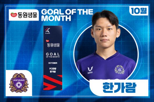 [OSEN=고성환 기자] FC안양 한가람이 2025시즌 10월 K리그 ‘안심을 마시다 동원샘물 이달의 골’ 수상자로 선정됐다.