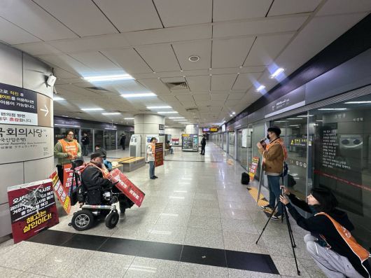 이와 별도로 혜화역 등에서 오전 8시에 진행하던 출근길 아침 선전전은 지난 5일부터 장소를 9호선 국회의사당역 승강장으로 바꿨다.