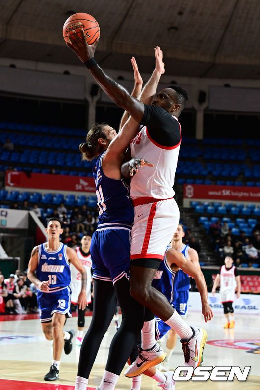 [OSEN=잠실학생체, 조은정 기자]12일 서울 송파구 학생체육관에서 2025-2026 동아시아 슈퍼리그 (EASL) 서울 SK 와 홍콩 이스턴의 경기가 열렸다. SK는 1패를 안고 있고, 홍콩 이스턴은 EASL 시즌 첫 경기다. 2쿼터 SK 자밀 워니가 슛을 시도하고 있다. 2025.11.12 /cej@osen.co.kr