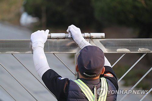 (속초=연합뉴스) 류호준 기자 = 2026학년도 대학수학능력시험(수능)일인 13일 강원 속초시 장사동 속초고등학교 정문을 학교 관계자가 수능 입실 시간에 맞춰 닫고 있다. 2025.11.13