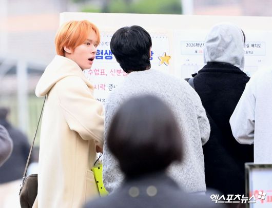 그룹 투어스(TWS) 경민이 수능을 치르기 위해 수험장으로 향하고 있다.