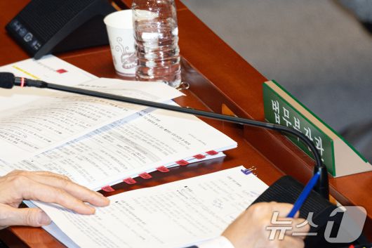(서울=뉴스1) 이승배 기자 = 정성호 법무부 장관이 13일 서울 여의도 국회에서 열린 제429회국회(정기회) 예산결산특별위원회 제8차 전체회의에 출석해 대장동 항소 포기 관련 질의 자료를 살펴보고 있다. 2025.11.13/뉴스1photolee@news1.krCopyright ⓒ 뉴스1. All rights reserved. 무단 전재 및 재배포, AI학습 이용 금지.
