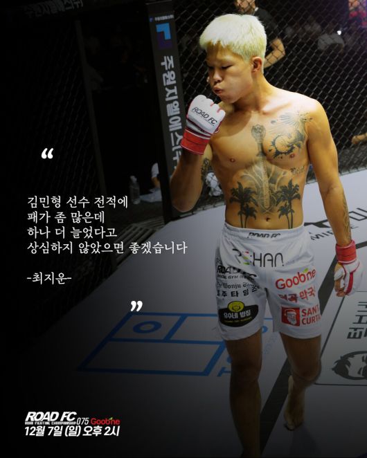 로드FC 075는 1·2부로 나뉘어 치러진다. 1부 메인 이벤터로 나서는 최지운(24, 로드FC 원주)과 김민형(27, 팀 피니쉬) 만남에 눈길이 쏠린다.
