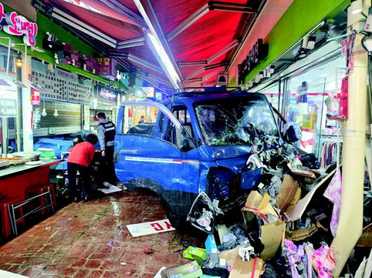 13일 소방청에 따르면 이날 오전 10시 55분쯤 1톤 트럭이 시장 인도로 약 100m 돌진했다. 이 사고로 심정지 2명, 의식장애 3명, 중상 6명, 경상 9명 등 다수의 인명 피해가 발생했다.