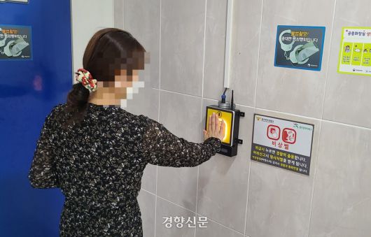 광주의 한 공중화장실에 범죄 예방 등을 위한 비상벨을 점검하고 있다. 민간 시설에 지정된 개방화장실에는 대부분 비상벨이 설치돼 있지 않다. 광주시 제공. |